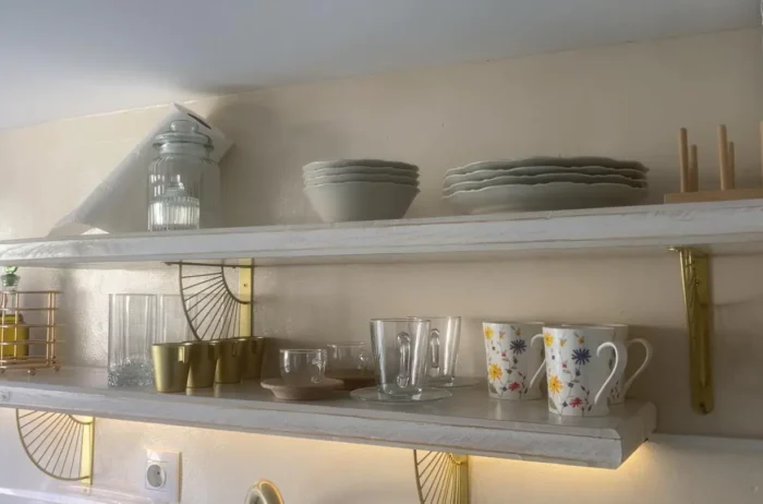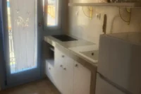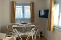 Entering the apartment, you will find a comfortable living room with a cozy sofa and high-tech flat screen TV for your entertainment needs. Additionally, the kitchen is fully equipped with all the necessary stuff.