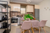 Entering this apartment, you will find a comfortable living room with a cozy sofa and high-tech flat screen TV for your entertainment needs. Additionally, the kitchen is fully equipped with all the necessary stuff.