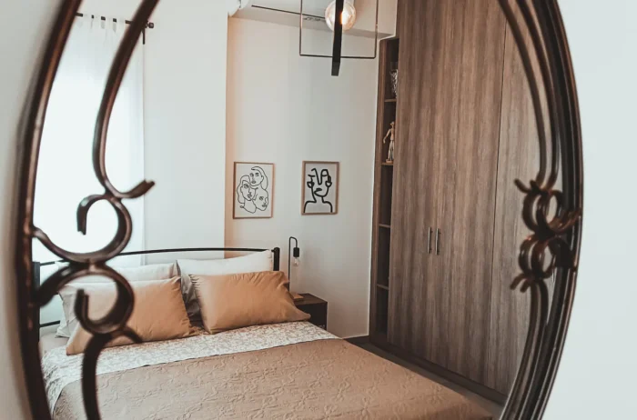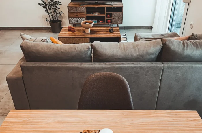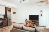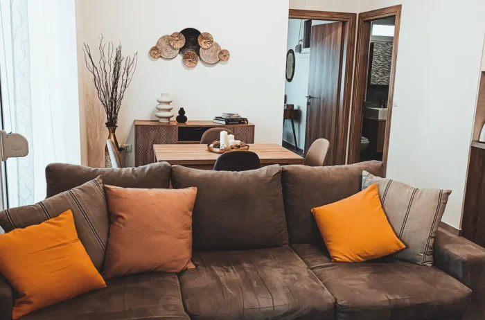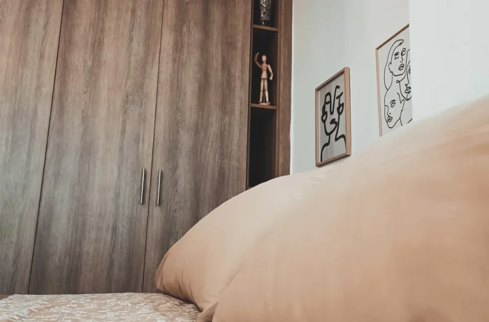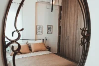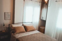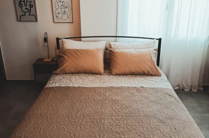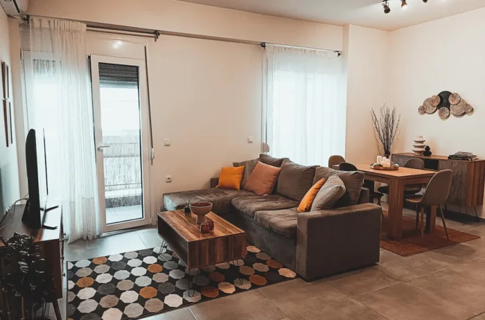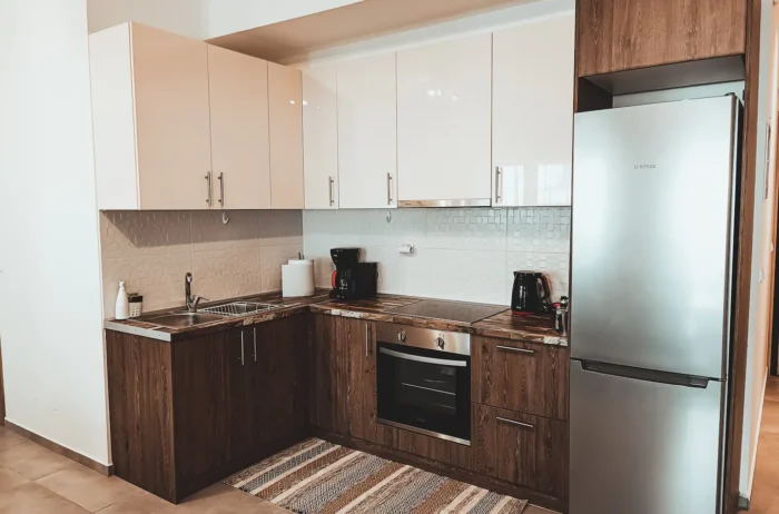 Entering this apartment, you will find a comfortable living room with a cozy bed turnable sofa and high-tech flat screen TV for your entertainment needs. Additionally, the kitchen is fully equipped with all the necessary stuff.