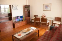 Entering this apartment, you will find a comfortable living room with a cozy sofa that turns into a bed and high-tech flat screen TV for your entertainment needs. Additionally, the kitchen is fully equipped with all the necessary stuff.
