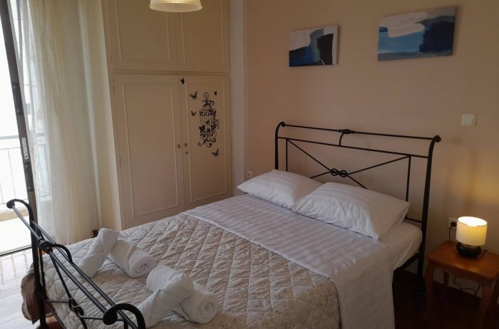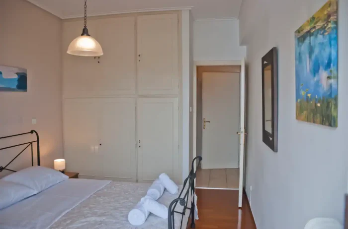 The apartment’s bedroom has a reposeful double bed.