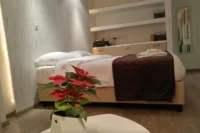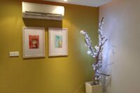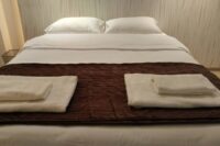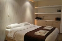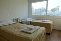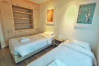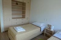 The apartment has 2 bedrooms with 1 double size bed and 2 single beds.