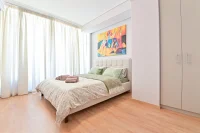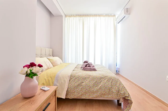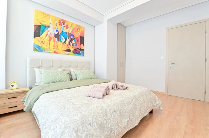 The apartment’s 2 bedrooms have reposeful beds.