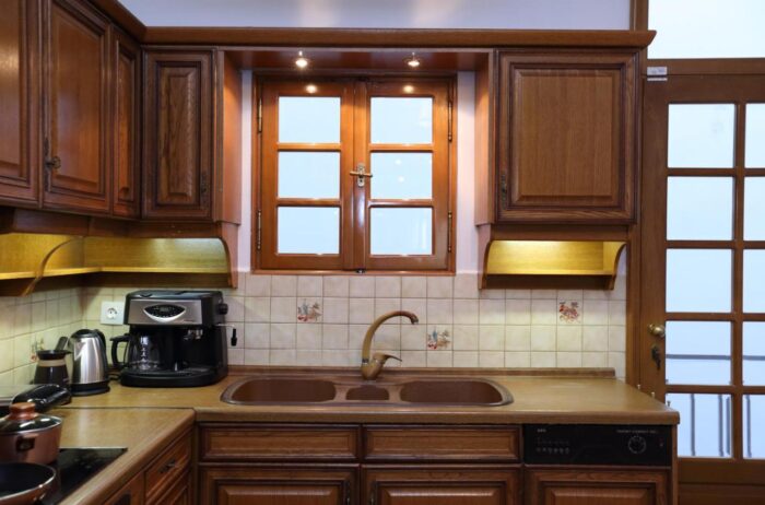 Entering this apartment, you will find a comfortable living room with a cozy sofa and high-tech flat screen TV for your entertainment needs. Additionally, the kitchen is fully equipped with all the necessary stuff.