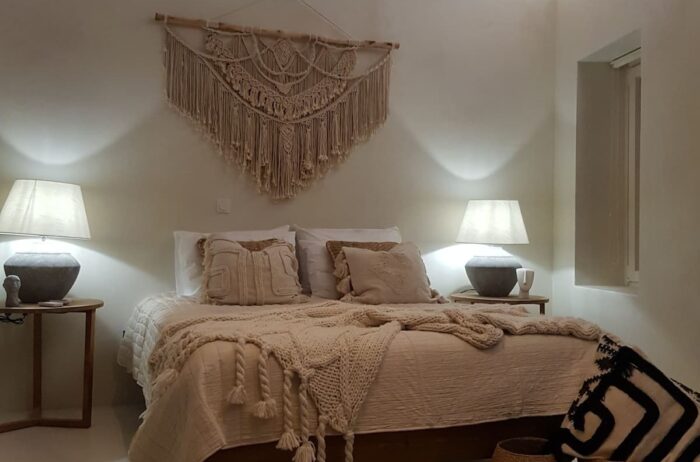 The apartment’s 2 bedrooms have reposeful beds.